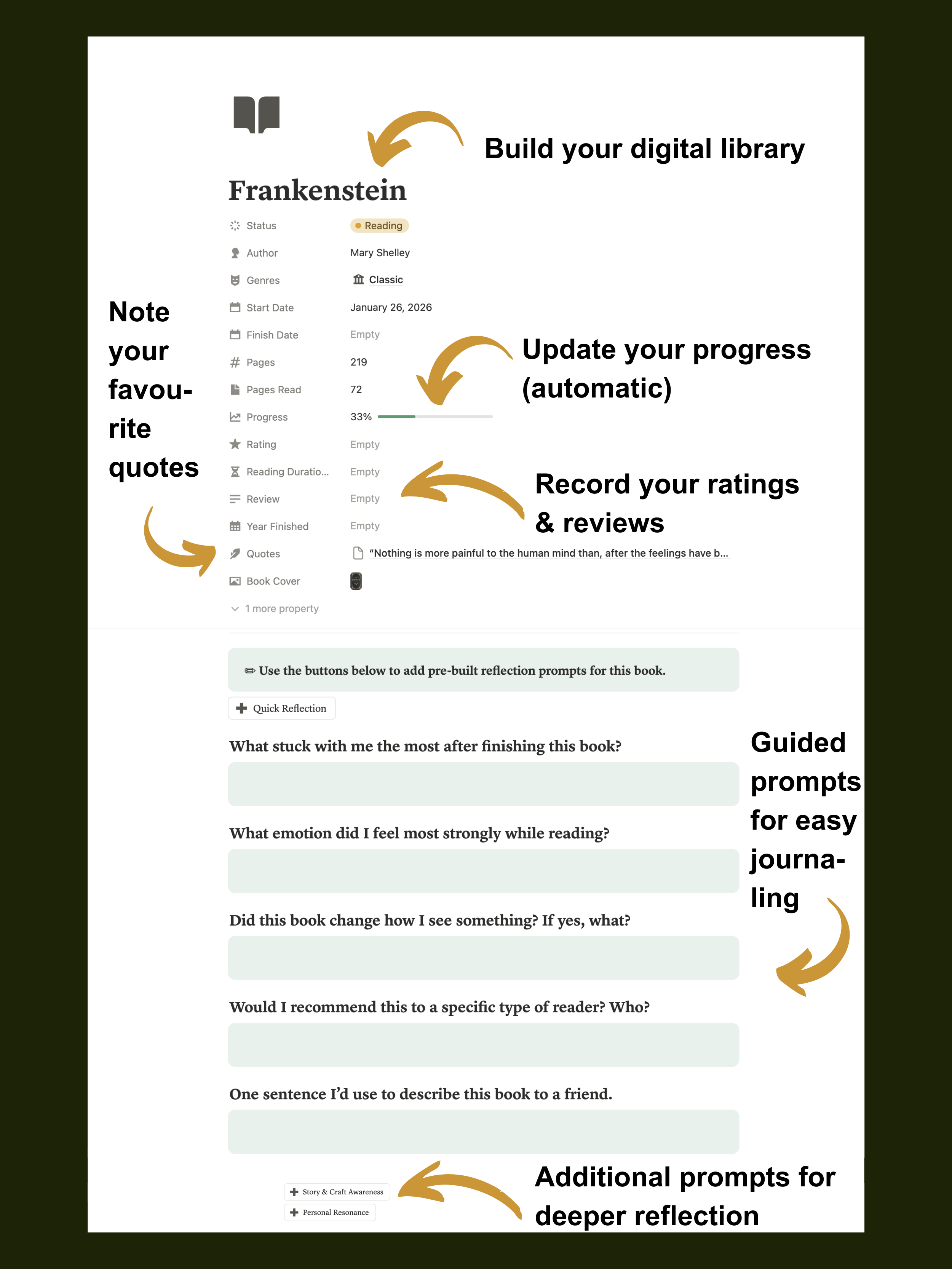 This Digital Reading Journal & Book Tracker helps you slow down just enough to: