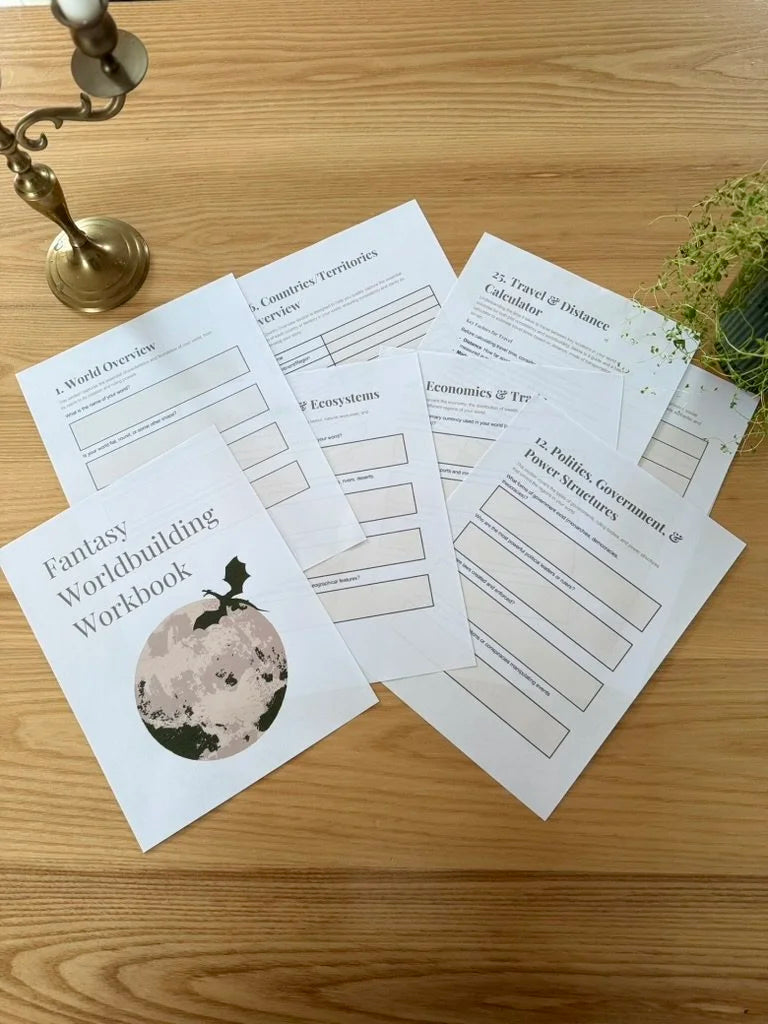 This Fantasy Worldbuilding Workbook comes in a fillable (or printable) PDF.